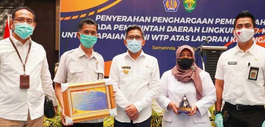 Pjs Bupati Kutim menerima penghargaan WTP pengelolaan keuangan tahun 2019. (foto: istimewa) HEADLINEKALTIM.CO, SANGATTA – Pemkab Kutai Timur menerima penghargaan dari Badan Pemeriksa Keuangan (BPK) RI atas capaian Laporan Keuangan Pemerintah Daerah (LKPD) dengan opini Wajar Tanpa Pengecualian (WTP) tahun 2019.