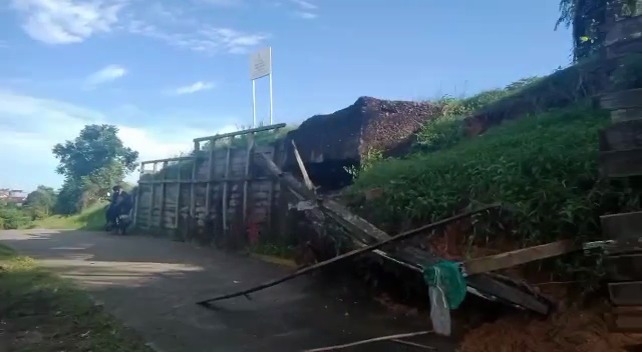 Huja juga menyebabkan sebuah dinding penahan tanah atau siring di kawasan Tangki Satu Gunung Pipa juga longsor dan hampir menutup badan jalan alternatif yang sering dilalui roda dua maupun roda empat.