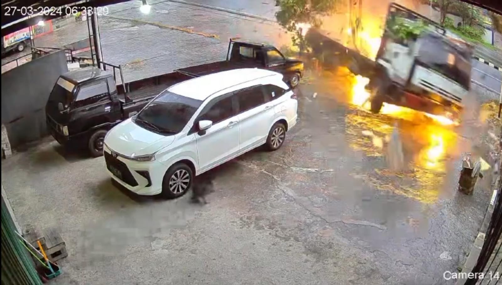 Dari rekaman video yang beredar, truk kontainer melaju dari arah pasar Butun menuju ke arah RSUD Kanutjoso Djatiwibowo. Namun, tiba-tiba truk pindah jalur. Di saat bersamaan ada pengendara motor melaju ke arah pasar Butun.